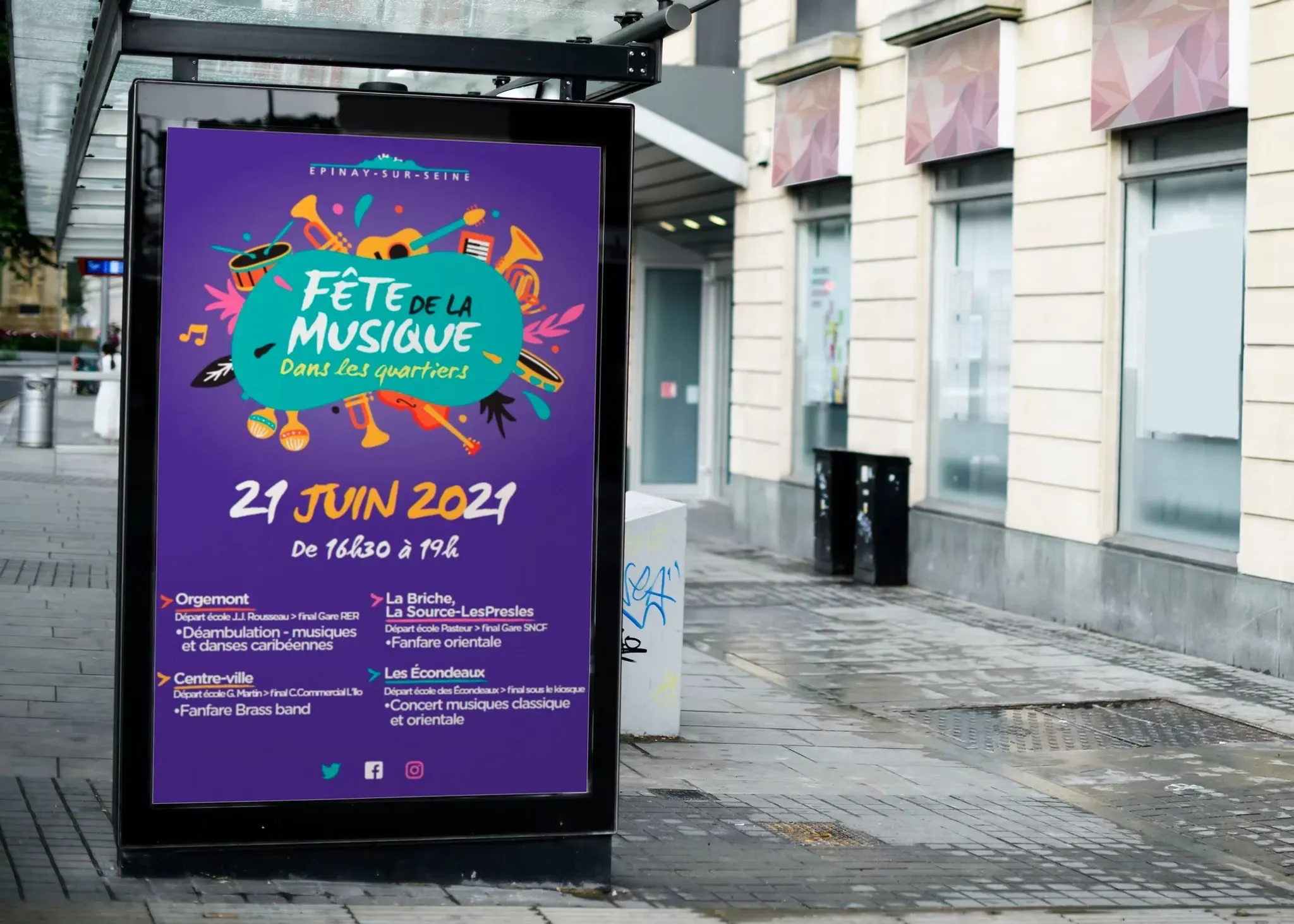 Création d'une affiche pour promouvoir un événement de la Mairie d'Epinay-sur-Seine avec identité visuelle unique